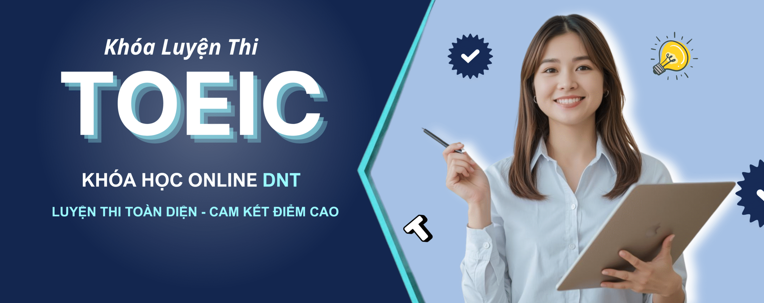 “Em đi làm nên không có nhiều thời gian, nhưng học TOEIC online ở DNT rất hợp. Video ngắn – dễ hiểu, bài tập rõ ràng, thầy cô phản hồi nhanh. Nhờ vậy mà em nâng được gần 200 điểm chỉ sau 1 khóa. Rất cảm ơn trung tâm!.”